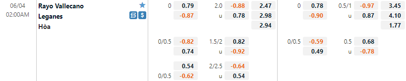 Soi kèo châu Á Rayo Vallecano vs Leganes: 0.78*0*0.86